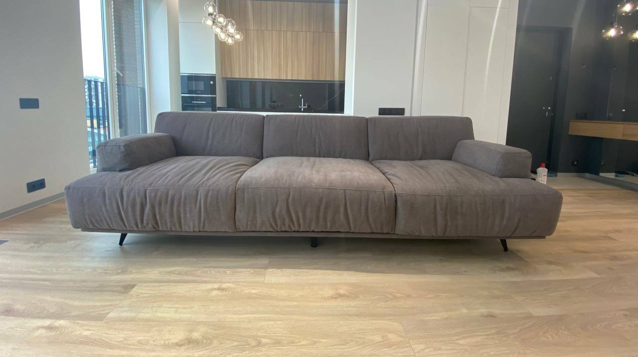 Диван по достоинству оценят обладатели просторной гостиной. Диван стоит на стильных практически невидимых ножках, которые визуально делают модель словно парящей в воздухе.