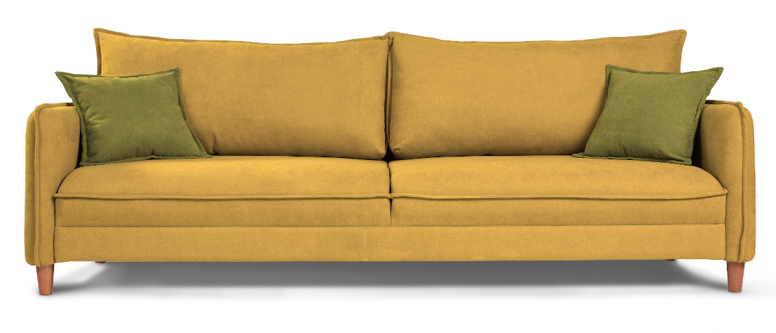 Лео — эргономичный диван с глубоким сиденьем и мягкими дополнительными подушками. Благодаря прочному и удобному механизму диван легко превращается в удобную двуспальную кровать.